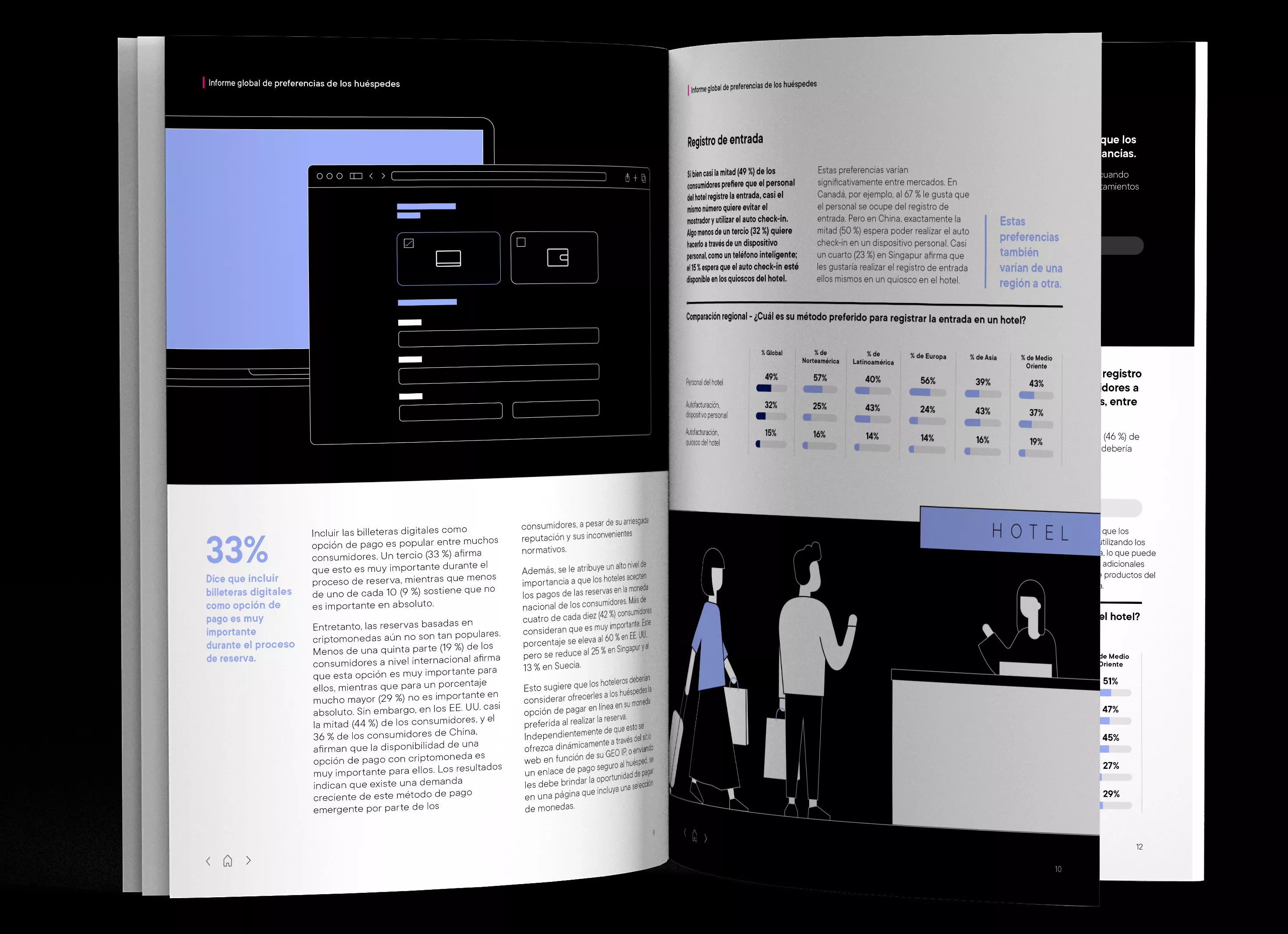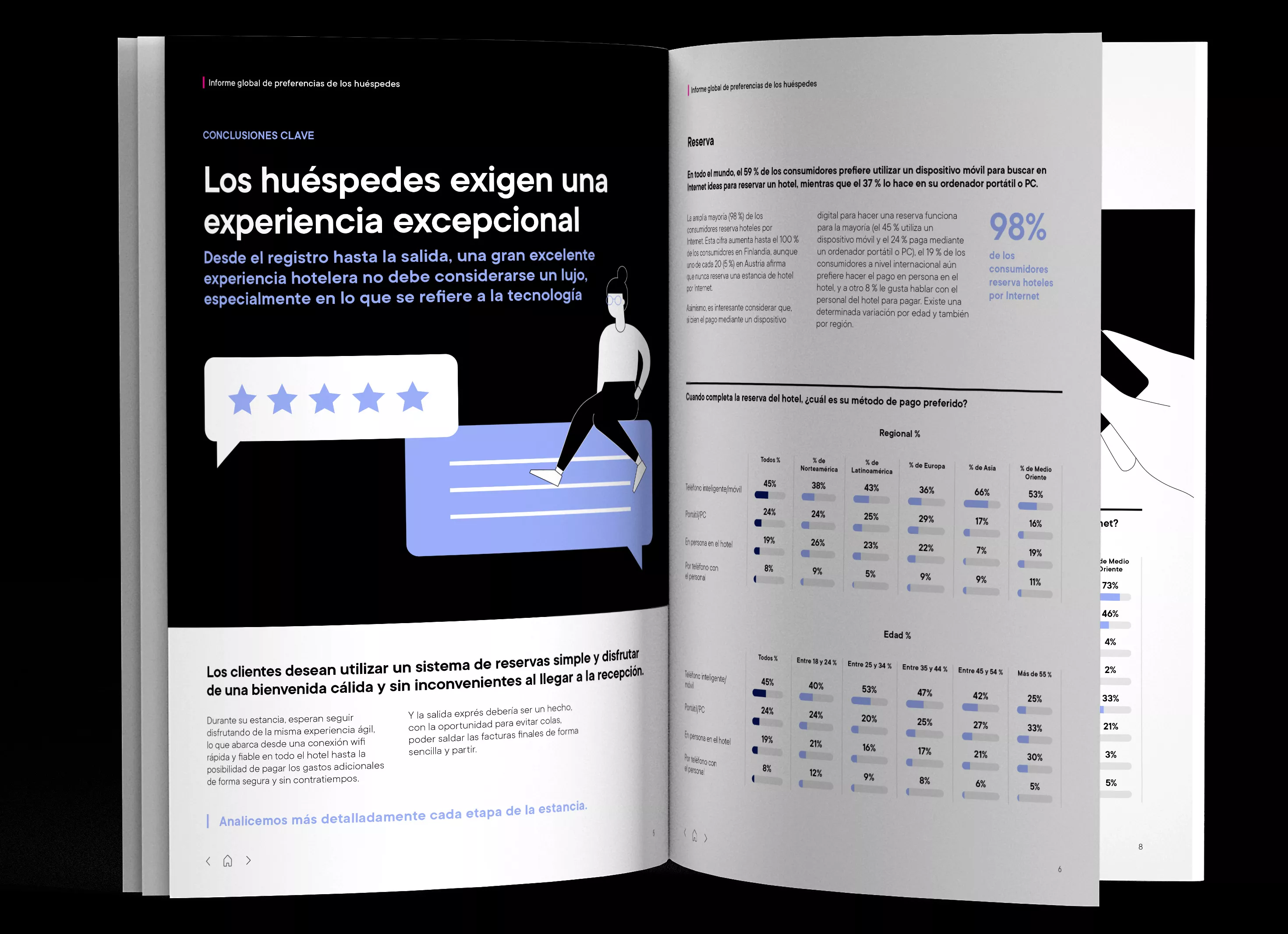 Datos globales, regionales y locales: Acerca de lo que constituye una gran experiencia para el huésped, tanto en línea como en el establecimiento, cómo eligen los huéspedes reservar, hacer el check-in y el check-out y qué esperan si vuelven, y preferencias generales sobre pagos, divisas, seguridad y Wi-Fi y TV.