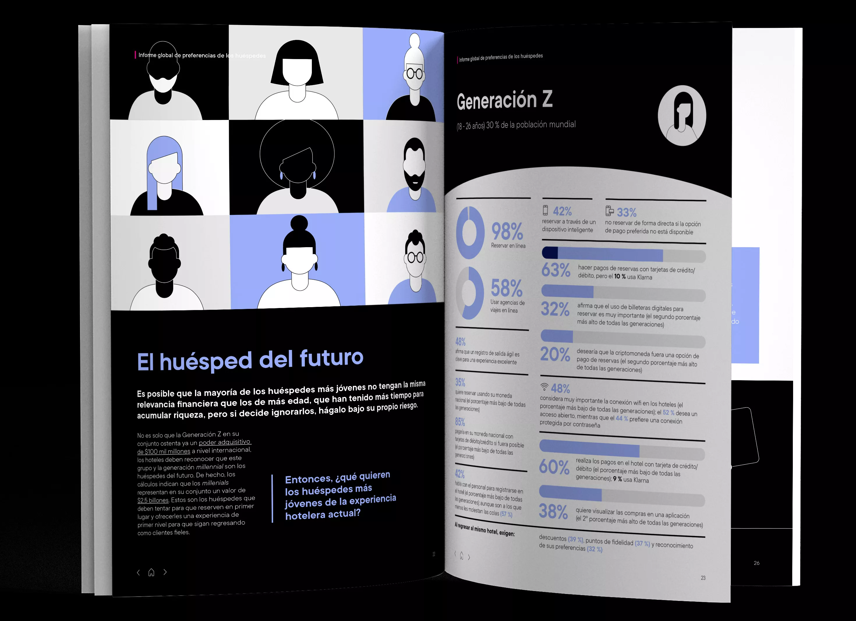 Áreas de especial interés: Análisis completo de la estancia ideal en un hotel para tus huéspedes con datos de apoyo en cada etapa, así como comprensión del huésped del futuro (una comparación entre la Generación Z y los Millennials) y lo que quieren de su experiencia en un hotel hoy en día.