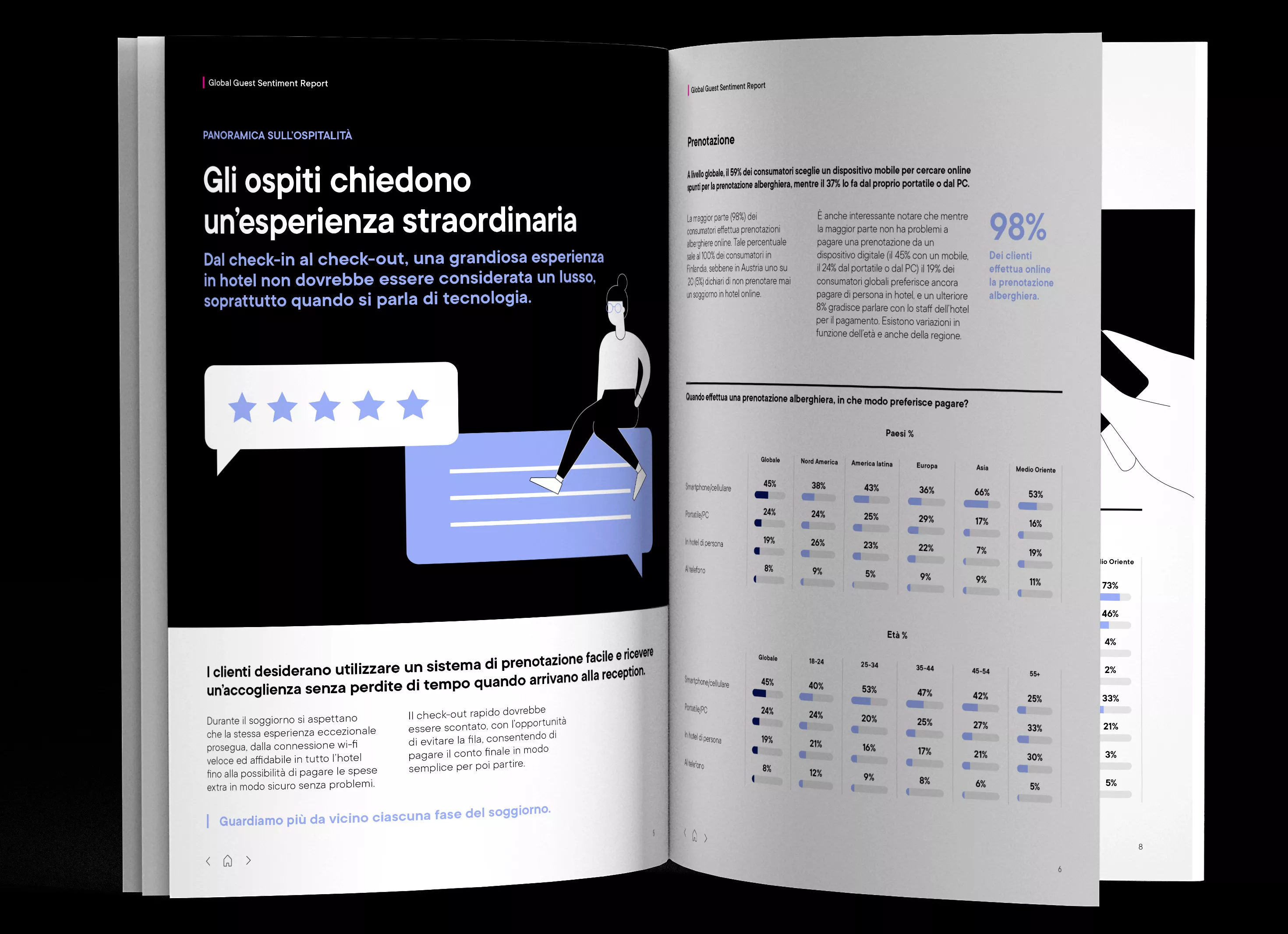 Ottieni informazioni preziose e leggi i dati più recenti su ciò che dicono i tuoi ospiti scaricando il nostro report esclusivo 2023. Scopri le ultime preferenze e tendenze dell'ospitalità tra i clienti globali di tutte le età e come questo potrebbe avere un impatto sulla tua attività.